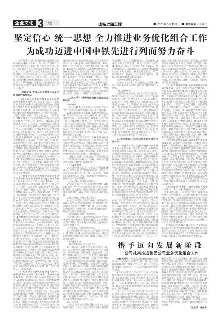 坚定信心统一思想全力推进业务优化组合工作为成功迈进中国中铁先进行列而努力奋斗