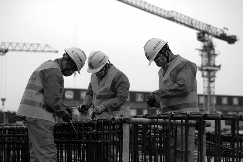 为如期完成履约目标,该项目在春节期间留守了500余名一线工人,紧锣密鼓地开展各项重点工序施工。新冠疫情爆发后,该项目在做优疫情防控的基础上,合理调配留守劳动资源,点对点接送返岗劳务人员,并积极与业主单位协调组织劳务人员进行核酸检测,为疫情防控和复工复产设立了“双保险”。当前,一线工人到岗1400余人,大幅提升了施工生产进度,延续了正式开工以来424天未中断施工的“沥滘奇迹”,创造了14.6亿的施工总产值。图为项目三期施工大干现场,工人正在绑扎钢筋。