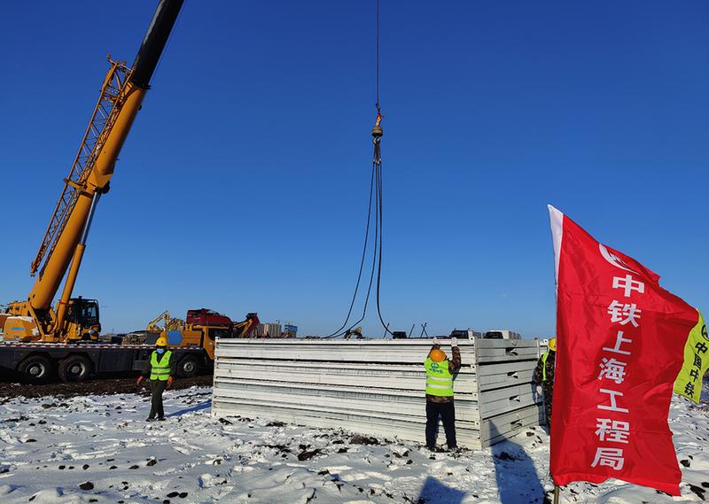 3月16日,四公司烟长高速公路项目部援建队伍在接到通知后再次启航,全力支援吉林省疫情防控工作,紧急驰援长春市兴隆保税区抗疫用房建设。图为土地平整施工。