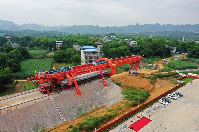 10月8日上午,随着一孔近700吨的箱梁稳稳落在渠皿双线特大桥桥墩上,由集团公司承建的崇凭铁路项目全线首孔箱梁成功架设,顺利实现“当年开工,当年架梁”目标,标志着崇凭铁路项目建设正式转入梁体架设阶段。