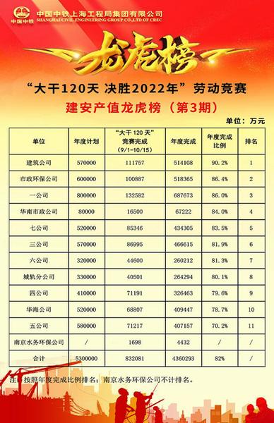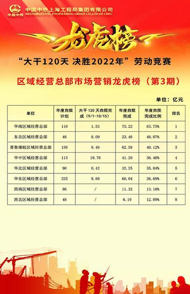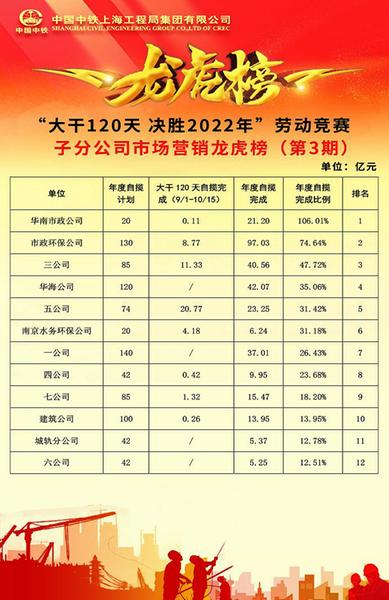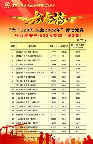 “大干120天 决胜2022年”劳动竞赛龙虎榜(三)