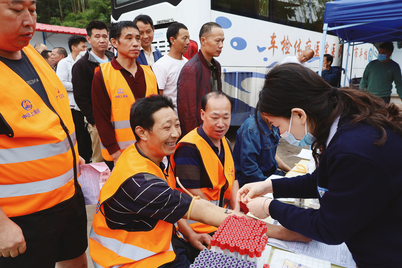 11月11日,柳梧铁路项目部邀请属地医院开展“健康体检送一线,安全守护建柳梧”健康体检活动,为全体参建员工撑起“健康保护伞”。申佳佳 吴支江/摄影报道