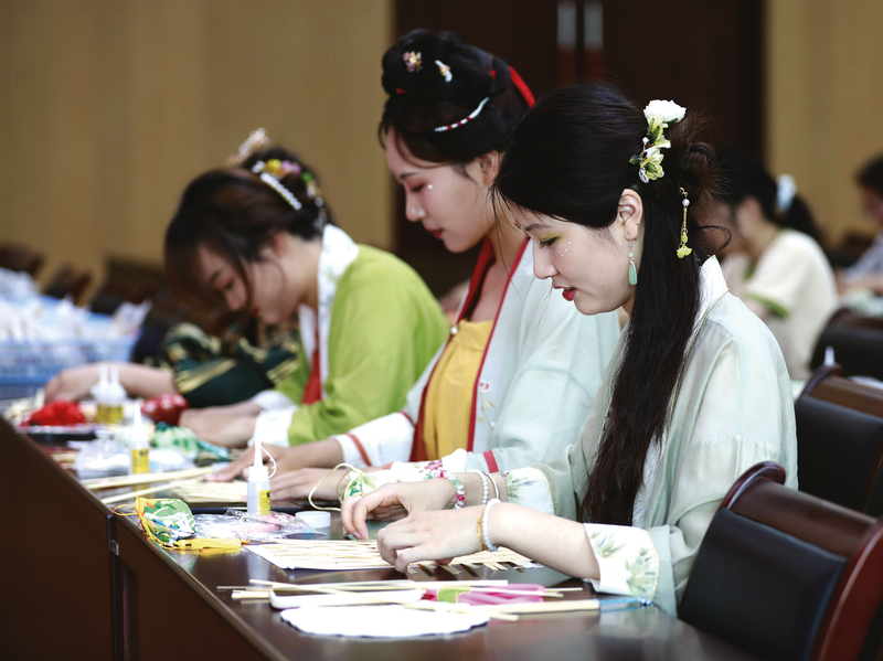 着汉服做竹扇,体验传统文化文娱活动 林迅飞 任秦玉/摄