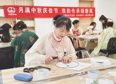 华海公司杭州地铁15号线3标项目部与社区联合开展“一袭汉服越千年,共赴中秋游园会”DIY主题活动。 颜志伟/摄