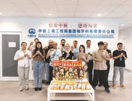 一公司匈塞铁路项目组织中匈员工开展“情浓中秋建功匈塞”中秋慰问活动,拉近中匈员工距离,促进双方文化理解。 吕成成/摄