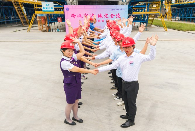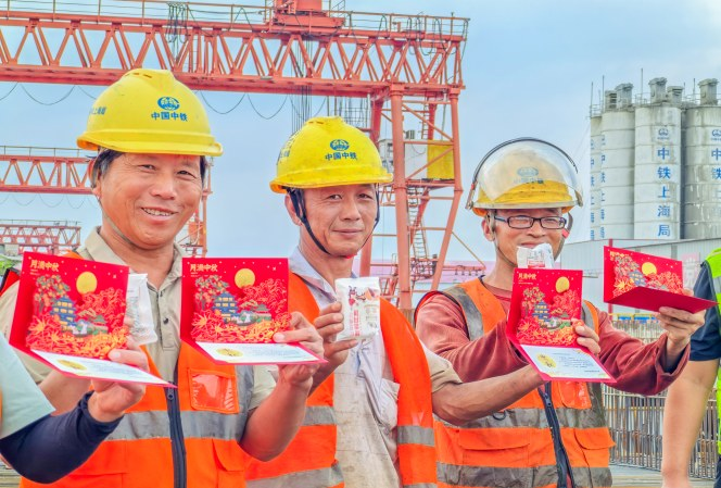 ④为传递组织的温暖和关怀,七公司郯城制梁场中秋慰问活动走进施工现场。 陈涛/摄