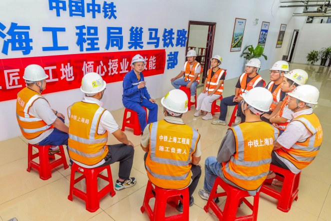 ②三公司巢马铁路项目部邀请马鞍山市首位“大国工匠”传授精湛技艺。 周虹/摄