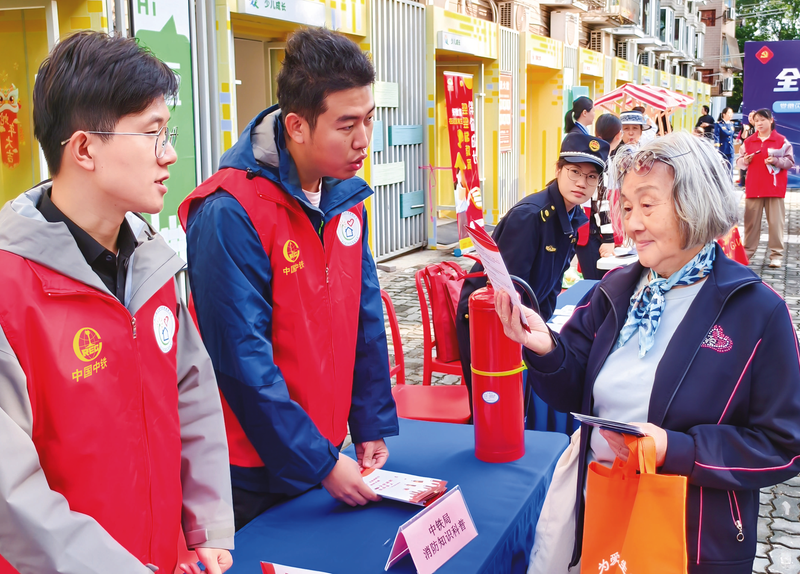 11月6日,建筑公司联合开展“全民消防生命至上”便民志愿服务活动,为属地商户和社区居民宣传科普消防知识。 陈哲豪/摄影报道