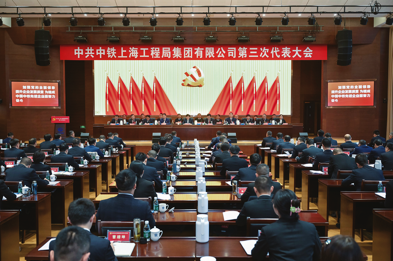 中共中铁上海工程局集团有限公司第三次代表大会现场 上海讯12月23日,中共中铁上海工程局集团有限公司第三次代表大会在沪胜利召开。大会的主题是:高举习近平新时代中国特色社会主义思想伟大旗帜,深入贯彻党的二十大和二十届历次全会精神,全面落实中国中铁第五次党代会工作部署,动员全公司各级党组织和广大党员干部职工自信自强、守正创新、踔厉奋发、勇毅前行,为建成中国中铁先进企业而努力奋斗!