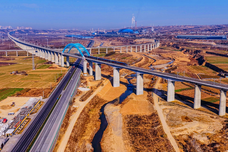 12月26日,西延高铁正式开通运营,图为开通列车经过集团公司参建的富平特大桥。芦楠摄影报道