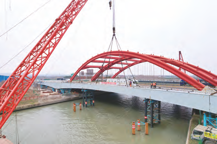 1月12日,一公司上海G15沈海高速吴淞江西幅钢梁完成合龙,标志青浦、嘉定两区跨江连通取得突破。尹壮壮/摄影报道