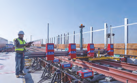 集团公司北沿江铁路项目技术人员正在智能高程精调器对轨道进行自动化精调。 詹晖林/摄影报道