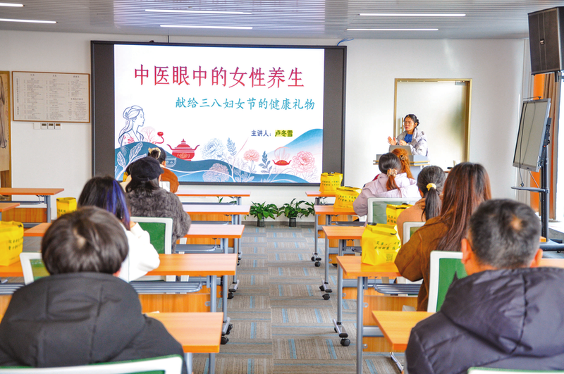 3月6日,南京枢纽2标二分部组织全体女职工开展“关爱女性健康”主题养生活动。蔡沚青/摄影报道