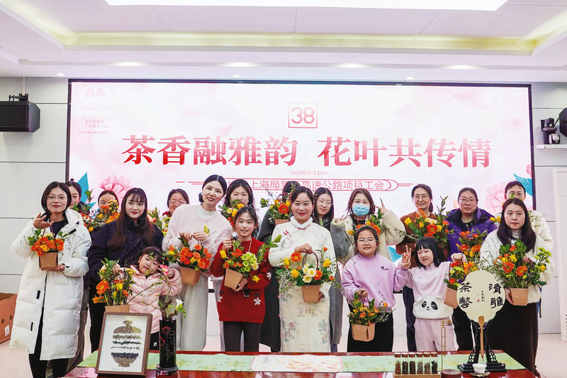 市政环保公司襄新高速项目开展“茶香融雅韵花叶共传情”妇女节主题活动。孟原/摄影报道