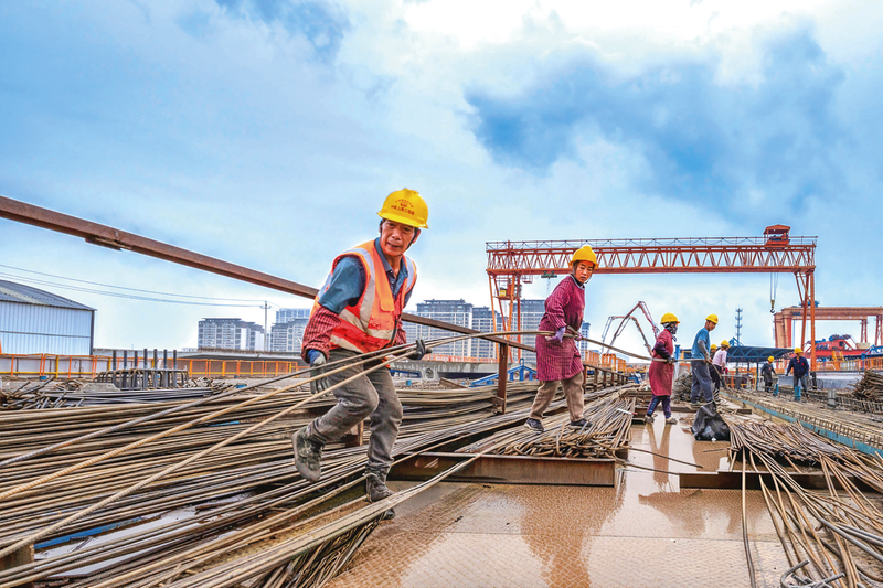 一公司金华铁路枢纽扩容3标项目锚定年度架梁任务,正在奋力推进项目建设。 张宁慧/摄影报道