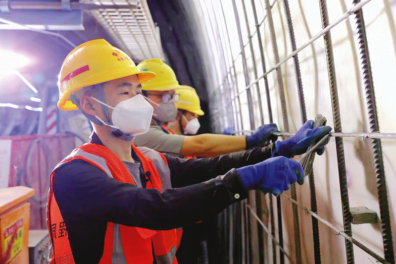 五公司黄百铁路项目工人们正在全线最长隧道-上里隧道进行二衬钢筋绑扎作业。 李迎/摄影报道